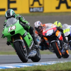 川崎重工業は2009年1月9日に、FIMロードレース世界選手権MotoGPの参戦活動を休止すると発表した。写真は2007年の日本GPで2位になったランディ・ドゥ・プニエ選手。