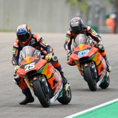 カウンターステアを当てるか、当てないか…。絶妙なアングルで安定した進入スライドを見せる、モトGP・ドゥカティファクトリーの2台。後輪の制動力を高める狙いで、スリッパークラッチを作り込んでいるようだ。細部も手を抜かない開発姿勢…。 マスダンパーや空力パーツ、そしてホールショットデバイスなど、ちょっとしたことでも逃すことなくトライし続けているドゥカティ。モトGP界の先駆者として、テクノロジーをリードし […]