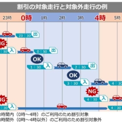 【2022年4月1日から導入される深夜割引】混雑する昼間の利用から、比較的交通量の少ない深夜の利用を促すために、深夜0時から4時までの間に首都高速の入り口等を通過する車両(ETC車に限る)の料金を20%割引する深夜割引が新たに導入される。