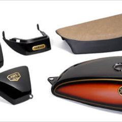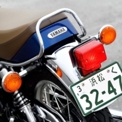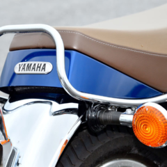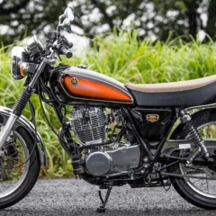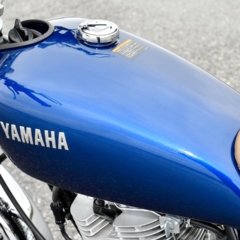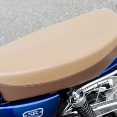 【ヤマハ純正外装セットが登場】今年8月、ヤマハの純正アクセサリーを手掛けるワイズギアから「SR400クラフトビルド外装セット」が発売された。'19年モデルの40周年記念限定車とも異なるWサンバースト塗装と、ファブリック調のシート表皮、オリジナルデザインの真鍮製サイトカバーエンブレムなどが特徴で、価格は14万8000円。なお、タンクは'10年以降のFIモデルに対応する。
