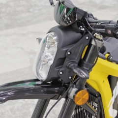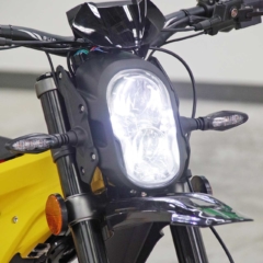 【灯火類はすべてLED採用。EUの安全基準をクリア】日中でも明るいヘッドライト。実はハイビームのみでローがないEU仕様だ。