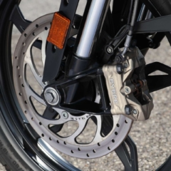 【末弟のG310GSにも40周年カラーを用意】シリーズ共通のエッセンスを抽出したスタイリングはそのままに、灯火類をオールLED化。ブレーキ&クラッチレバーは調整機構付きとなった。試乗車は“40イヤーズGS”エディションカラーで、価格は1万円アップ。
