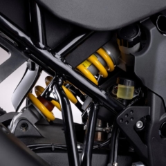 46mm径の倒立フロントフォークはコンプレッション、リバウンド、プリロード調整可能。