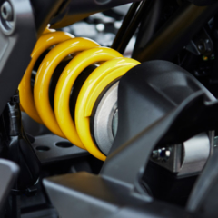 リヤショックはKYB製で、プリロードと伸び側減衰力がアジャスタブル。リンケージもMT07とは異なり、R7専用の設定とされている。