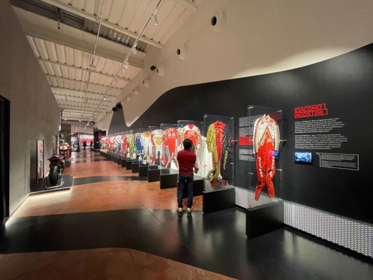 本格的なバイクシーズン到来前に、走る準備を整えよう……ということで、今年からウエア類のお世話になることになったダイネーゼのショップに出向き、レーシングスーツ用の採寸をしてきました。ショップはモナコから500kmほど離れたイタリア・ヴィチェンツァの街にあるんですが、とにかく大きくて立派。ケニー・ロバーツやエディー・ローソンなど往年の名ライダーたちのレーシングスーツが飾ってあったり、見所もたくさんありました。