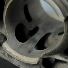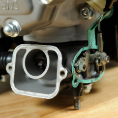 1/3番気筒に備わる排気デバイスのATACは、以後のNSRとはまったく異なる構造。トラブルは少ないものの、市街地走行ではカーボンが溜まりやすい。本体とエキゾーストパイプ用ガスケット(左)は3960円で、リンクカバー用は825円。