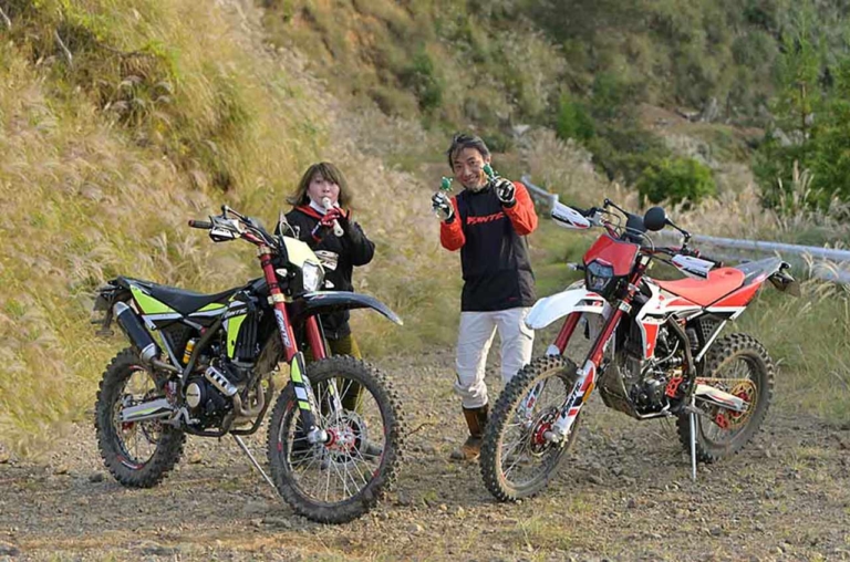野口「舗装路と林道での乗り心地に大きな差がなく、どんな路面でも同じ乗り味を感じられるので、それも乗りやすさになっていると思いますね。250のパワーはスペックでは21.5psですが、それがリヤタイヤから路面にキッチリ伝わっている感じで、国産トレールマシン以上にパワフルに感じられると思います」