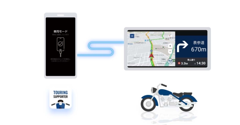 ツーリングに便利なバイク専用ナビゲーションアプリ「ツーリングサポーター」が、多くのバイクメーカーも採用するボッシュの「mySPIN」に対応したと発表されました。スマートフォンにアプリをインストールし、バイクのメーターと無線で連携することによって、さまざまな機能が使えるようになります。