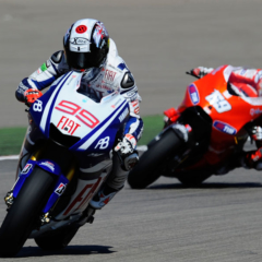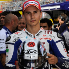 アラゴンGPの決勝では富沢祥也レプリカカラーのヘルメットを被って走ったホルヘ・ロレンソ選手。