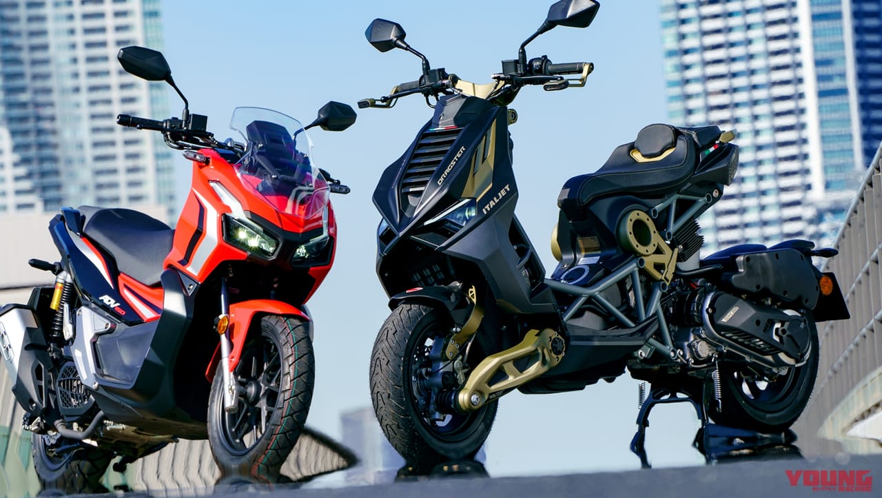 「フロントフォークがない!」 古来よりメカ好きライダーのハートを激しくバクバクさせてきたハブセンターステアリング。その最新派生系と言えるのがイタルジェット「ドラッグスター」が採用するインディペンデントステアリングシステム(I.S.S.)だ。メカニズムはもちろんのこと、スタイルだってこの超絶尖りっぷりと、あまりにも唯我独尊すぎるドラッグスターを前に「これは何かしらの比較基準が必要では…?」と考えた我々ヤングマシン。目下大人気の軽二輪スクーター・ホンダADV150にその任を与え、数々のハブセンター車経験を持つ『ヤングマシン』誌メインテスター・丸山浩氏にハンドルを託すことにした。さてさて、国産随一の個性派アドベンチャースクーターに対し、ドラッグスターは何がどうぶっ飛んでいたのか!? 寄ってらっしゃい、見てらっしゃい!