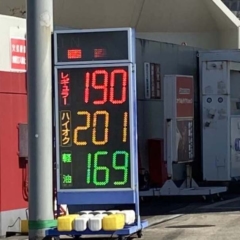 3月5日に改定された海老名SA上り線のガソリン価格。ここまで来たら補助金などではなく、ガソリン税の特例税率を廃止すべきだろう。