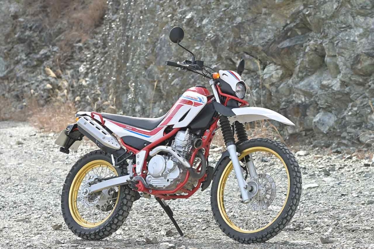 【ヤマハ SEROW250 FINAL EDITION】■全長2100 全幅805 全高1160 軸距1360 シート高830(各mm) 車重133kg ■空冷4ストローク単気筒DOHC2バルブ 249cc 20ps/7500rpm 2.1kg-m/6000rpm 変速機5段 燃料タンク容量9.3L ■タイヤサイズF=2.75-21 45P R=120 80-18M C 62P ●価格:58万8500円(生産終了モデル)
