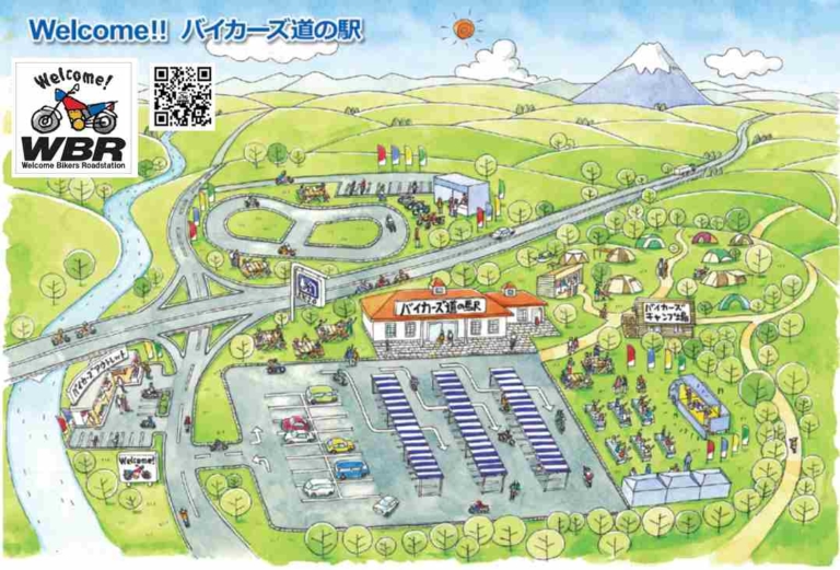 筆者の友人で、静岡県磐田市在住の松木さんが提唱しているWBRの完成予想イラストがこれ。屋根付き駐輪場がある道の駅にはイベントステージや、アウトレットショップ等があり、隣接してキャンプ場や新車の試乗ができるミニコースまで設けられている。こんな道の駅がそこここにあれば、きっとライダーの数も増えていくはずだ。この記事の文末に、松木さんの構想のプレゼン動画があるので、ぜひそちらもご覧いただきたい。