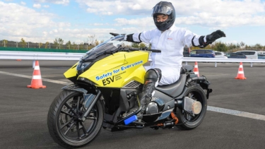 自然な乗り味を重視。操る楽しみは奪わない 空車状態のバイクがスタンドなしで直立している。ライダーが乗り込むと、2km/hの極低速でも倒れることなく旋回していく…。栃木県のテストコースでホンダが報道陣に[…]
