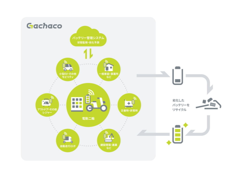 「Gachaco」はエネルギー供給のほかにも、シャアリング事業で使用した交換式バッテリーのリサイクル事業の実施。日本自動車工業会二輪車委員会でも、この事業への参画についての検討が始まっています。