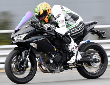 約1年に渡って熟成を続けて来たトリックスターのZX-25Rターボは、3月下旬に日本自動車研究所で行った最高速アタックで、ノーマル+約70km/hとなる252km/h(メーター読み。実測は243km/h)を記録している。もちろん同社では、製品化を前提にしてこのプロジェクトを進めて来たのだが、仕様がある程度煮詰まって来た段階で、最高速に特化してシビアな特性になった既存のデモ車=1号車では、一般的なライダーの共感を得るのは難しいと判断。数ヶ月前からは、フレンドリーさを念頭に置いた2号車の開発に着手し、1号車が驚異の最高速をマークした現場では、2号車のテストも行われた。