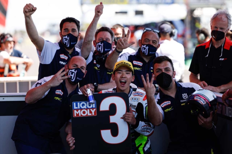 Moto3と同様に、3位表彰台獲得で日の丸を掲げてくれたのは、Moto2の小椋藍くん。いいレースを見せてくれましたが、チームメイトのソムキアット・チャントラが、前戦の優勝に引き続き2位表彰台ですからね……。これは小椋くんにとって間違いなくいい刺激になっているはずです。