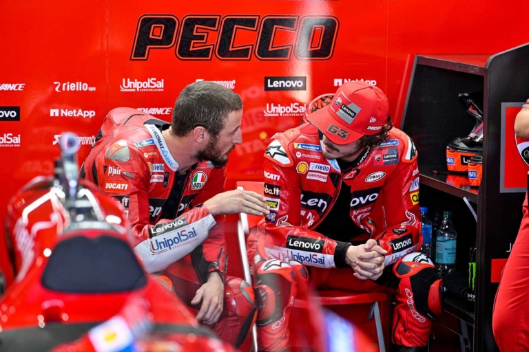 次戦アメリカズGPの決勝グリッドはドゥカティが1~5位を占め、ファクトリーはジャック・ミラー選手(左)が2位、バニャイア選手は3位。今夜は誰が勝ってもおかしくない!