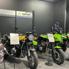 先の東京MCショーでドレミコレクションが発表したZ900RSベースのカスタム車「GPZ900R・ニンジャスタイル」「Z1000R・ローソンスタイル」なども展示。パーツの先行予約も受付中だ。