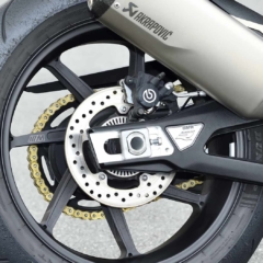 【プレミアムライン以上は電サスだ】マルゾッキ製倒立フロントフォーク/フルフローター式リヤショックとも、ベースモデルはフルアジャスタブルで、プレミアムラインとMパッケージは新世代電子制御サスペンションのDDC搭載。ブレーキはABSプロを導入。