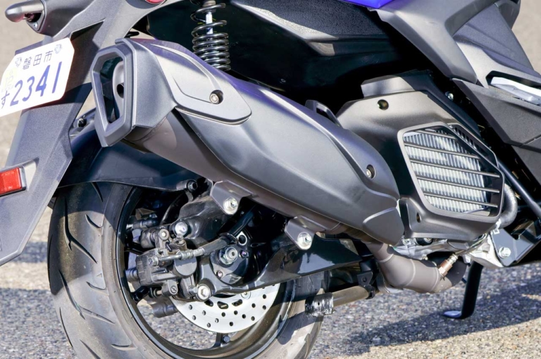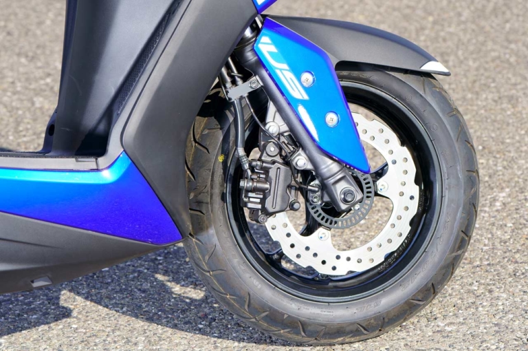 ハンドリングもいい。先代は直立を保とうとする力が強い印象があったが、新型はライダーの操作に対して忠実に反応し、スムーズにコーナリングできるようになった。ディメンションや剛性バランスを見直した新型フレームをはじめ、前後タイヤのワイド化、減衰特性を最適化したフロントフォークなどが功を奏しているのだろう。ブレーキは、リヤのディスクがシグナスXよりも30mm大径化され、さらに左レバーでフロントも作動する前後連動システムを採用する。スリッピーな路面での減速やUターンなど、リヤだけ利かせたい場面でフロントも作動してしまうのはネックだが、右手で加速/左手で減速というシンプルな乗り方ができるという点は長所と言えよう。
