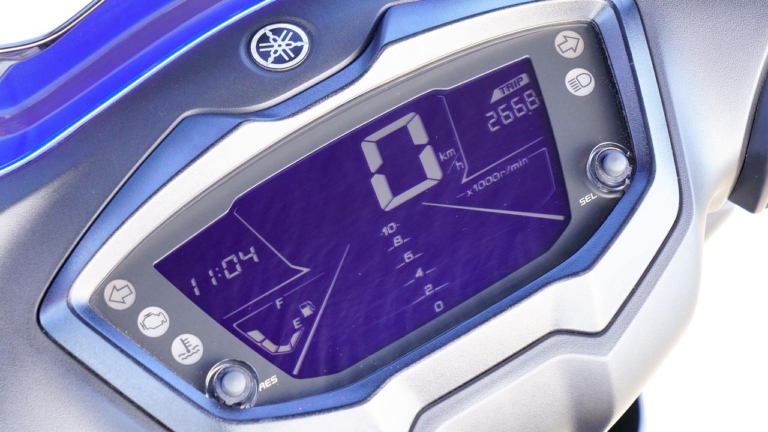 まずはそのエンジンから。可変バルブVVAやスマートモータージェネレーターを採用した124cc水冷シングルは、シグナスXから2割以上もパワーアップしたことが注目されがちだが、何より驚いたのは上質さだ。前作の空冷単気筒はメカノイズや微振動が多めでやや騒々しい印象があったが、新型はセルの作動音からアイドリング、そして発進を含む加減速に至るまで、非常に静かでスムーズなのだ。50km/h付近、6000rpmに差しかかるとローカムからハイカムに切り替わり、そのことを示すアイコンがメーターの左上に表示されるが、加速フィールは極めてシームレスであり、気が付けば交通の流れをリードしている。