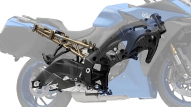 【高荷重/タンデム/積載、すべてに対応するシャーシ】軽快なハンドリングと高い接地感を狙った、アルミツインスパーフレームとスイングアーム。シートレールは、サイドケースの装着やパッセンジャーの快適性向上を考慮して設計。