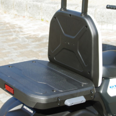 【’21 HONDA GYRO CANOPY e:】■全長×全幅×全高:1870×700×1710(mm) ■シート高:715mm ■ホイールベース:1360mm ■車体重量:168kg ■原動機:交流同期電動機 (EF13M) ■定格出力:0.58kW ■最大出力:3.2kW/5800rpm ■最高速度:50km/h ■最大登坂角度:14°≧ ■駆動用バッテリー:リチウムイオン(ホンダモバイルパワーパックe:またはホンダモバイルパワーパック) ■バッテリー電圧/容量/充電時間:50.26V/26.1Ah(1311Wh)/約5h ※ホンダモバイルパワーパックe:の場合 ■ブレーキ:F/R=機械式リーディングトレーリング ■タイヤサイズ:F=90/90-12-44J R=130/70-8-42L ■航続距離:約77km※1 ■車体色:ロスホワイト ファイティングレッド ■車両区分:原付一種 ■運転免許:原付免許~ ■乗車定員:1名 ●価格:71万5000円(法人向け販売価格。ホンダ モバイルパワーパックe: および専用充電器の価格は含まれていない) ※1「ホンダモバイルパワーパック e:」を2個使用した場合で、30km/h定地走行テスト値
