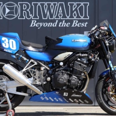 【Z900RS MORIWAKI改】HSR九州で開催される鉄フレームバイクのレース・鉄馬に、モリワキは'20年からZ900RS MORIWASKI改で参戦している。足まわりのセットアップも、大きな振り幅で変化を楽しみながら走りを追求。このノウハウがGB350プロジェクトにも受け継がれる。