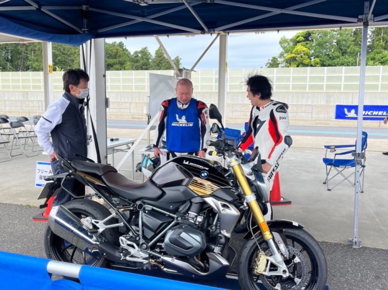 別の日には、袖ヶ浦フォレストレースウェイで行われたBMWのイベントに参加しました。僕はミシュランのスペシャルプログラムとして、サーキットでのタンデム走行をやらせてもらったんですが、僕の後ろに乗った皆さんは、「こんなに早いタイミングで、こんなにしっかりと減速しているんですね!」と驚かれていました。