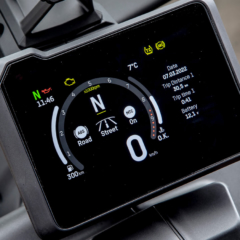 【メーター表示はとにかく豊富】メーターは見やすいフルカラー液晶パネルを採用。外気温により路面凍結警告なども表示。オプションでスマートフォン連携機能/グリップ&シートヒーターにも対応している。