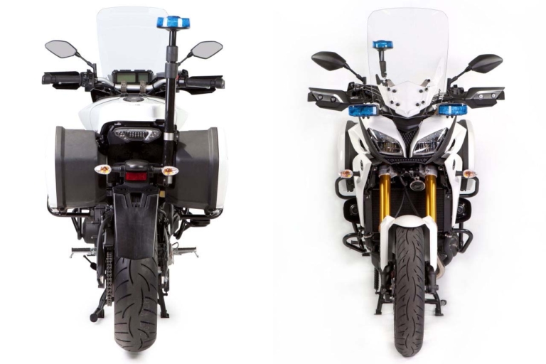 欧州で2015年に登場したMT-09トレーサー・ポリス。大型スクリーンや青色のフラッシングライト、リヤボックス&サイドケース、コンフォートシート、補助バッテリー、消火器ホルダーなどを追加装備している。新型ではさらにシャープな印象になりそうだ。