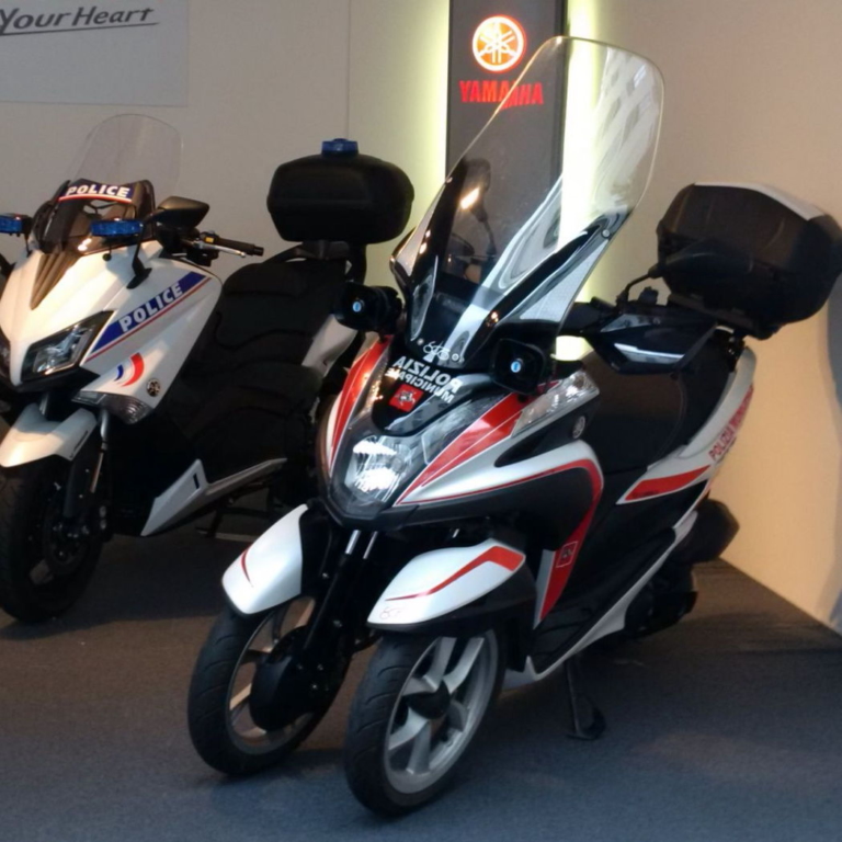 TMAXのポリス仕様もある(2015年)。写真はフランス仕様のようだ。