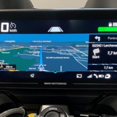 海外では大画面にマップを映して、2分割表示もできる。今後の対応に期待したい! なお新K1600はオプションのナビが装着可能。