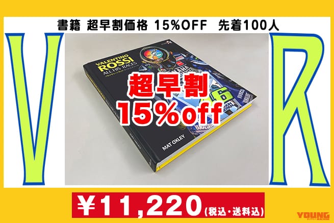 ウィック・ビジュアル・ビューロウは、2021年にMotoGPを引退したバレンティーノ・ロッシのレーシングヒストリーを凝縮した「オール・ヒズ・レース」の日本語版を、クラウドファンディングで出版する。今年欧州で出版されたばかり「All His Races」(マット・オクスレイ著)による、オールカラー332ページのフォトブックだ。