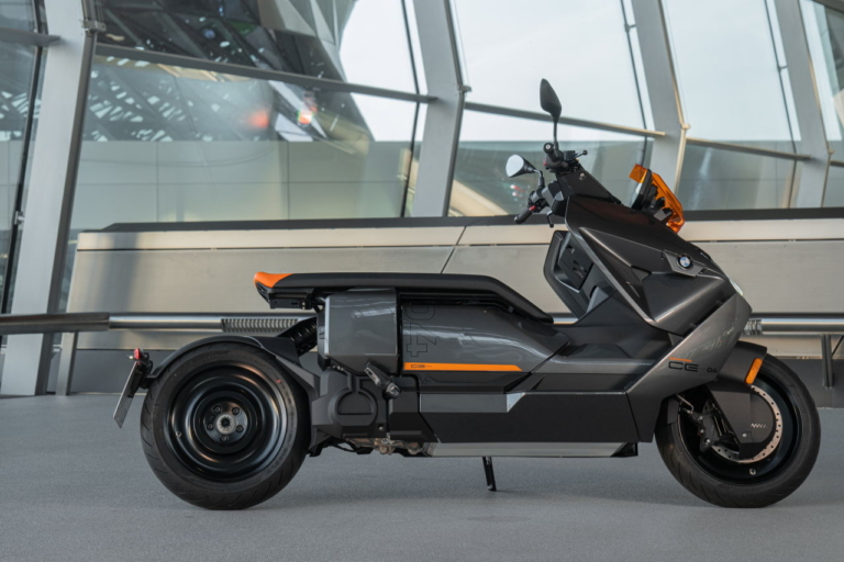 この夏発売予定の、BMWモトラッド・CE04(シーイーゼロフォー)。BMWモトラッドは以前、Cエヴォリューションという電気スクーターを販売していたので、その後継モデルとなる。定格出力20ps、最高出力42ps、最高速度120㎞、満充電での航続距離130㎞という高性能電動スクーターだが、日本では軽二輪扱いのため普通二輪免許で運転が可能。ただ、軽二輪扱いのため、補助金の支給対象になるには非常にハードルが高そうだ。価格は161万円(税込)~。