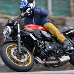 【テスター:丸山浩】Z650RSの50周年記念車のサイドカバーのエンブレムと、昭和なグラブバーがいたく気に入った本誌メインテスター。高揚した気分をフロントの高さで表現。本誌WEB動画やYouTubeでもZ650RSの魅力を余さずレポート!!