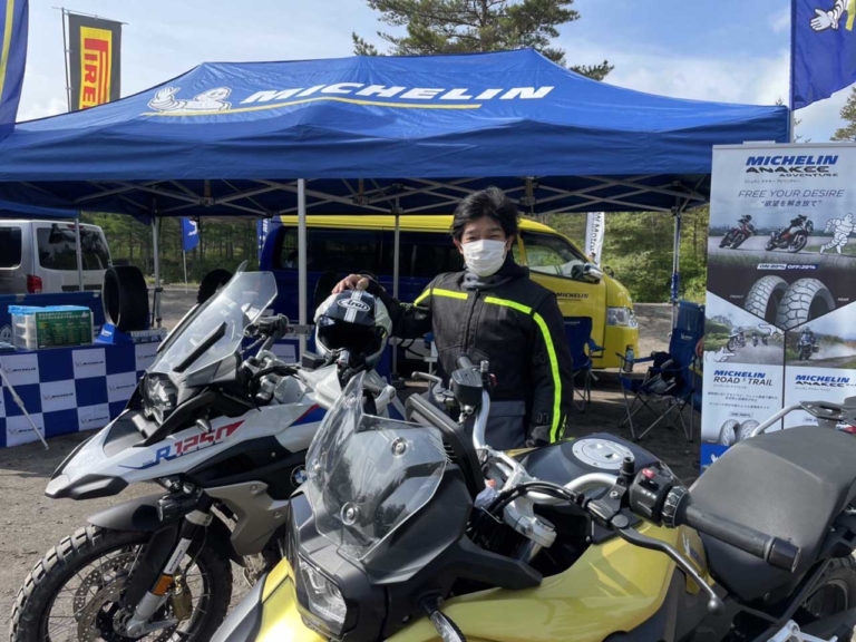乗ったのがオフロード性能の高いミシュラン・アナキー ワイルド装着車だったことも幸いしました。もう少しオンロード寄りのアナキー アドベンチャーを履いている方が多かったんですが、フラットダートや林道コースなどオフロード中心のイベントだったので、やはりアナキー ワイルドが有利。ミシュランのスタッフが「四輪のスタッドレスタイヤのように、走るフィールドに合わせてタイヤを替えるのがオススメ」と言っていましたが、その通りですね。交換の手間は少しかかりますが、やはりフィールドに合ったタイヤを履くのがベストです。