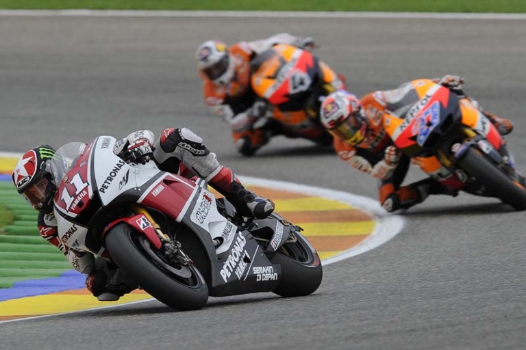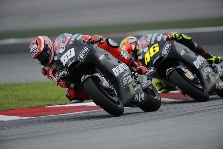#69ヘイデン選手と#46ロッシ選手、2012年1月末からのセパンテストにて。ドゥカティに移籍して2年目のロッシ選手は前年から苦戦が続いていたが、新しいフロントタイヤに対しては高評価だった。