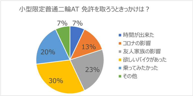 ユーザーアンケートなどでも、二輪免許取得の動機の上位には「友人・家族の影響」という理由が必ず入ってきます。パーセンテージも20%を超える高いものです。