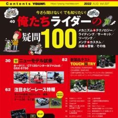 ヤングマシン2022年8月号は6月24日発売! 今回のスクープはホンダ尽くしです! まずはレブル250/500をベースとしたスクランブラー「CL250/500」、そしてダックス125の続編、さらに謎の4気筒(?!)に迫ります。巻頭特集はビギナーからベテランまで“今さら聞けない”系のネタを100個集めた『ライダーの疑問100』。バイク購入からライテク、法規まで幅広いジャンルを収めました。ニューモデル […]