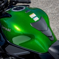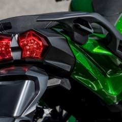 【KAWASAKI NINJA H2 SX SE】■全長2175 全幅790 全高1260軸距1480 シート高820(各mm) 車重267kg■水冷4スト並列4気筒DOHC4バルブ 998cc 200ps/11000rpm(ラム圧過給時210ps/11000rpm)14.0kg-m/8500rpm 変速機6段 燃料タンク容量19L ■タイヤサイズF=120/70ZR17 R=190/55ZR17 ●価格:297万円(STDは265万1000円) ●発売日:’22年4月22日