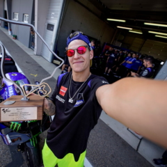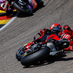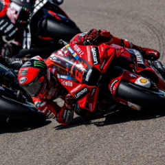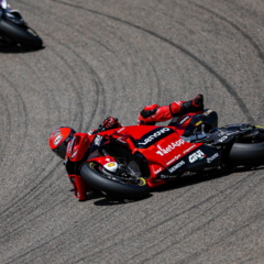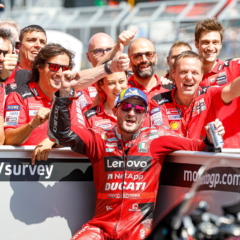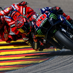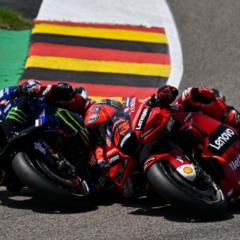 ドイツGP序盤、ストレートエンドで前に出たバニャイア選手を即座に抜き返したクアルタラロ選手。わずかな接触もあったが、ここが勝負の分かれ目になったか。
