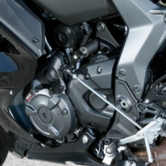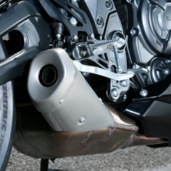 【ハイスロットルプーリー&2次減速比変更。スーパースポーツ的な味付けに】688ccの水冷パラツインは最高出力73psも含めてMT-07と共通で、ハイスロットルプーリーの採用/ドリブンスプロケットを43→42Tに変更するなどしてスポーティな乗り味を演出。