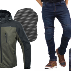 (左)コミネ製プロテクトメッシュパーカ-テン JK-114、(右)コミネ製プロテクトジーンズ WJ-749R