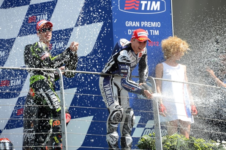 一方で、レースにおける2012年のアクシデントとしては、第7戦TTアッセン(オランダ)の決勝レースで、バレンティーノ・ロッシ選手とベン・スピーズ選手とエクトル・バルベラ選手のリヤタイヤに、トレッドの一部がチャンクアウト(トレッドの一部が剥がれ落ちてしまうこと)するトラブルが発生。このときアッセンに持ち込んだタイヤは、フロントがソフトとミディアム、リヤはミディアムソフトとミディアムでした。前年はミディアムとハードだったのですが、第6戦イギリスGPと同じく「ハードは必要ない」というライダーたちの声を受けて変更してありました。