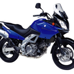 2004年に登場した初代Vストローム650。90度Vツインやアルミツインスパーフレーム、前110/80R19/後150/70R17のタイヤサイズといった基本設計は現行型まで踏襲される。燃料タンクは、2代目や3代目より2L大きな22Lだ。