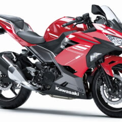 【KAWASAKI Ninja 250[2022 model]】主要諸元■全長1990 全幅710 全高1125 軸距1370 シート高795(各mm) 車重166kg(装備)■水冷4ストローク並列2気筒DOHC4バルブ 248cc 37ps/12500rpm 2.3kg-m/10000rpm 変速機6段 燃料タンク容量14L■タイヤサイズF=110/70-17 R=140/70-17 ●価格:65万4500円 ●色:赤×灰、灰×黒 ●発売日:2021年9月24日