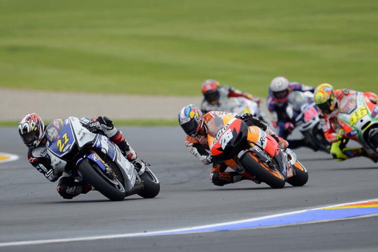 さて、2012年シーズンの話題に戻りましょう。この年は、ヤマハワークスチームのホルヘ・ロレンソ選手とホンダワークスチームのダニ・ペドロサ選手のチャンピオン争いとなり、ラスト2戦となった第17戦オーストラリアGPでペドロサ選手が転倒リタイヤに終わったことから、このレースで2位となったロレンソ選手のシリーズタイトル獲得が決定。ロレンソ選手にとっては、2010年以来となる自身2度目のMotoGPクラスチャンピオンでした。