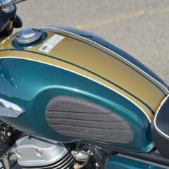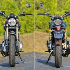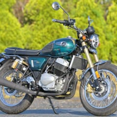 【GPX LEGEND 250 BRIGHTON】■全長2040 全幅785 全高1120 軸距1340 シート高790(各mm) 車重156kg(装備) ■空冷4スト並列2気筒SOHC2バルブ 234cc 16.3ps/8000rpm 1.53kg-m/6500rpm 変速機6段 燃料タンク容量14.5L ■タイヤサイズF=110/90R17 R=130/90R17 ●色:緑 青 ●価格:54万2300円 ●発売中